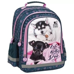 Słodkie pieski już czekają na Ciebie! Plecak przedstawia dwa czarujące pieski na białym i różowym tle, które z pewnością spodobają się każdemu miłośnikowi słodkich zwierzątek. Cechy produktu: Dwie duże komory