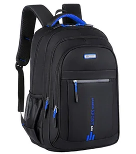 30 cm Waga: ok. 0,55 kg Kolor: czarny z niebieskimi elementami Kieszenie na zewnątrz: 4 Kieszenie wewnątrz: 1 Plecak pomieści format A4.