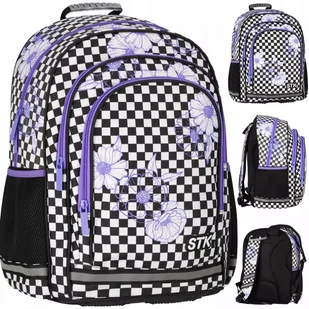 Plecak Szkolny Dziewczynki Szachownica W Kwiaty Piórnik Worek Bidon Zestaw