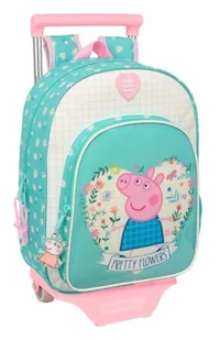 Safta PEPPA PIG PRETTY FLOWERS Plecak dziecięcy z wózkiem 705, idealny dla dzieci w różnym wieku, wygodny i wszechstronny, jakość i wytrzymałość, 26 x 11 x 34 cm, Mięta/pastelowy żółty, M, Casual