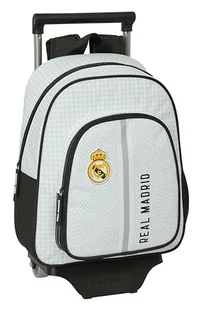 Safta REAL MADRID 1. WYPOSAŻENIE 24/25 - Plecak dziecięcy z wózkiem 705, idealny dla dzieci w różnym wieku, wygodny i wszechstronny, jakość i wytrzymałość, 28x10x34 cm, kolor biały/szary, biały/szary,