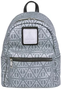 Mały, khaki plecak w srebrny, powtarzający się wzór Insygniów Śmierci, wykonany z tworzywa skóropodobnego. Plecak jest zapinany na zamek, a wewnątrz znajduje się jedna otwarta kieszeń, idealna na drobiazgi. Po obu bokach plecaka znajdują się dodatkowe otwarte kieszenie, a z przodu praktyczna kieszonka na najpotrzebniejsze rzeczy zapinana na zamek. Z tyłu plecaka znajdują się regulowane paski oraz uchwyt, a nieusztywnione dno zapewnia dodatkową pojemność. Mimo że w plecaku nie pomieści się dokumentów w formacie A4, jest wystarczająco przestronny, aby pomieścić wszystkie niezbędne rzeczy Twojego dziecka.