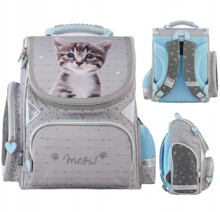 Tornister szkolny Paso plecak 1-3 klasa dla pierwszoklasisty Kotek szary