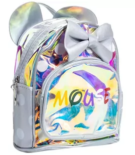 Uroczy dziecięcy plecak w stylu Myszki Miki Posiada dużą komorę i małą z przodu - obie zapinane na suwak Plecak posiada wiele ozdób Jest wykończony słodką ko...