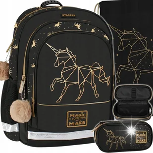 Zestaw szkolny składający się z 3 elementów: Starpak Plecak Szkolny Gold Unicorn 486094 Starpak Worek Szkolny na Obuwie Złoty Kotek Gold Unicorn 529469 Starp...