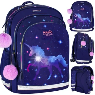 Zestaw szkolny składający się z 3 elementów: Starpak Plecak Galaxy Unicorn 2 529943 Starpak Piórnik Szkolny Tuba Usztywniana z Organizerem Unicorn Galaxy 2 5...