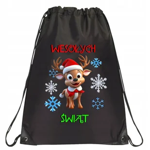 P215 Plecak Worek Na Prezenty Świąteczny Rudolf Czerwononosy Renifer