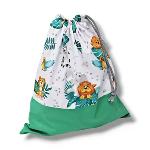 Worek na buty, worek na kapcie, strój gimnastyczny, zabawki, ubrania, bieliznę itp. uszyty z bawełny 100% z kolorowym wzorem zoo Worek do przedszkola lub szk...