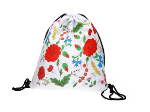 Worek sportowy - plecak kociewski biały Worek na odzież sportową lub do noszenia jako plecak. Folkowy nadruk ze wzorem haftu kwiatów kociewskich. Plecak wyko...