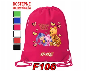 WOREK SZKOLNY sportowy , na wf, na trening, na buty, na wyjście ze znajomymi + IMIĘ ! NUMER WORKA Z SZABLONU PONIŻEJ : F106 NAPIS: Imienia/Nicku/Tekstu/Wieku...