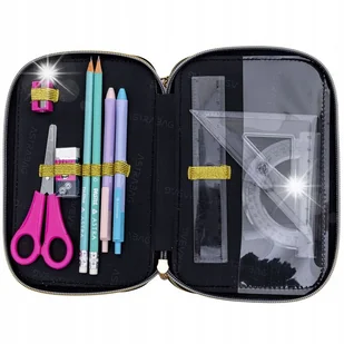 ASTRA PIÓRNIK TRZYKOMOROWY Z WYPOSAŻENIEM DLA DZIEWCZYNKI CZARNY ZŁOTY KOT