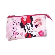 Piórnik saszetka Myszka Minnie, idealny do przechowywania artykułów piśmienniczych i akcesoriów szkolnych. Piórnik trójkomorowy Wymiary: 22x13x3,2 cm Materiał: poliester, PVC