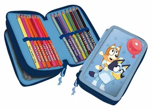 KIDS EUROSWAN Piórnik 2-komorowy z wyposażeniem Bluey 48208516. Piórnik dwukomorowy Bluey świetnie uzupełnia wyposażenie szkolnego tornistra • Piórnik dwukomorowy• Wymiary: 20x14x5 cm• Materiał: Poliester, • Zawartość : 1 ołówek, długopis, 9 kredek, temperówka, 18 flamastrów,