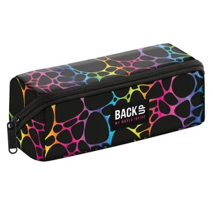 Piórnik BackUp 7 K29 DERFORM. Fuzja kolorów Posiada czarne tło, które doskonale kontrastuje z unikalnym wzorem bąbelków Układają się w dynamiczny, kolorowy motyw zebry, tworząc przyciągający wzrok efekt tęczy - gradient odcieni od słonecznej żółci, przez energetyczną. . .