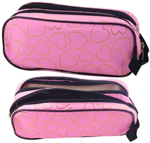 Piórnik Szkolny Biurowy Dwukomorowy Złote Serca Różowy 23,5x10 cm