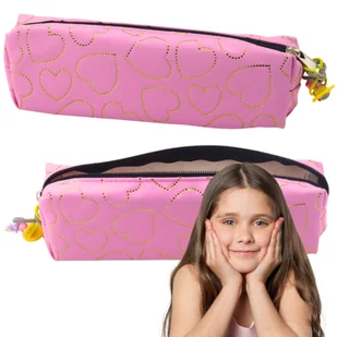 Piórnik Szkolny Biurowy Jednokomorowy Złote Serca Różowy 20x6,5 cm Miękka forma piórnika sprawia, że jest on wyjątkowo elastyczny i wygodny w codziennym użyt...