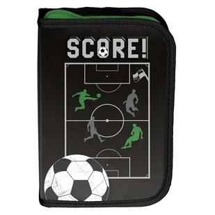 Piórnik z wyposażeniem Piłka PP25FA-P001. Piórnik jednokomorowy z dwoma klapkami z wyposażeniem (długopis, ołówek, 7 pisaków, 9 kredek, gumka, linijka, temperówka, ekierka) Zadrukowane kolorowe wnętrzeWYMIARY 19,5x13x3,5MATERIAŁ Poliester