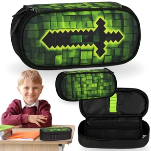 Pixel KOMOROWY piórnik szkolny DLA GRACZA, Saszetka OWAL dla chłopca 22x10x5cm