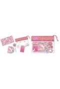 - kalkulator - notes w linie na spirali - długopis z ozdobą - arkusz naklejek do dekorowania Zestaw zapakowany w przezroczystą saszetkę z dwoma przegródkami zamykanymi na zamek.