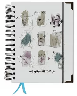 180 ✔️ Strony: numerowane, delikatnie kropkowane co 5 mm ✔️ Papier: delikatnie kremowy, ekologiczny (matt, 120g/m²) ✔️ Okładka: twarda ✔️ Dodatki: zakładka wstążkowa, gumka, która nie pozwoli otworzyć się kalendarzowi w nieoczekiwanym momencie, koperta/kieszonka z tyłu planera na wszystkie luźne notatki, małe dokumenty, naklejki lub rachunki, metalowe ochraniacze zabezpieczające narożniki Wyjątkowy TaDaPlanner ✴ 1 - twarda okładka na spirali dopasowanej kolorystycznie do wzoru okładki ✴ 2 - zakładka wstążkowa ✴ 3 - gumka, która nie pozwoli otworzyć się kalendarzowi w nieoczekiwanym momenci.