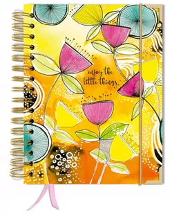 180 ✔️ Strony: numerowane, delikatnie kropkowane co 5 mm ✔️ Papier: delikatnie kremowy, ekologiczny (matt, 120g/m²) ✔️ Okładka: twarda ✔️ Dodatki: zakładka wstążkowa, gumka, która nie pozwoli otworzyć się kalendarzowi w nieoczekiwanym momencie, koperta/kieszonka z tyłu planera na wszystkie luźne notatki, małe dokumenty, naklejki lub rachunki, metalowe ochraniacze zabezpieczające narożniki Wyjątkowy TaDaPlanner ✴ 1 - twarda okładka na spirali dopasowanej kolorystycznie do wzoru okładki ✴ 2 - zakładka wstążkowa ✴ 3 - gumka, która nie pozwoli otworzyć się kalendarzowi w nieoczekiwanym momenci.