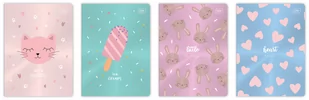 Format: A5. Liczba kartek: 16. Zadruk w kratkę. Zaokrąglone rogi. Okładka z modnym efektem srebrnej metalizy. Mix wzorów. Towar wysyłany losowo.