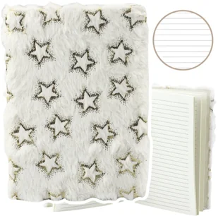 Pluszowy Zeszyt Notatnik W Linie Złote Gwiazdki Biały A5 80 Kartek