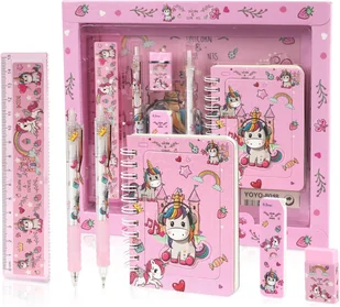 WYPRAWKA SZKOLNA DLA DZIEWCZYNKI ROŻOWY PREZENT PEŁNY ZESTAW OŁÓWEK ZESZYT ✅ KOMPLETNY ZESTAW ARTYKUŁÓW PIŚMIENNICZYCH Z JEDNOROŻCEM ✅ WYSOKA JAKOŚĆ I BEZPIE...