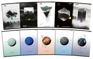 Opakowanie zbiorcze 10 sztuk. Cechy główne: Dwie kolekcje w jednej to jeszcze więcej różnorodnych okładek do wyboru. Matowa folia i wybiórczy lakier UV nadają okładkom elegancji. Zadrukowane okładki wewnętrzne doskonale korespondują z ilustracjami na przednich okładkach.
