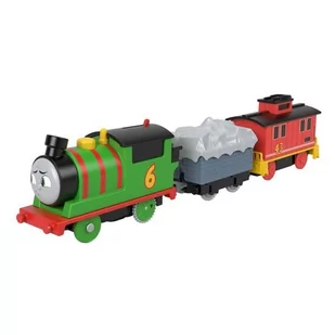 Thomas & His Friends TrackMaster - lokomotywa Percy i wagon hamulcowy Bruno Podczas gdy inne lokomotywy na wyspie bardzo dbają o swoją czystość, Percy jest zwykle widziany brudny na swoich torach. Jest szczególnie dumny, gdy może wykonywać ważne zadania dla grubego inspektora. Lokomotywa Bruno towarzyszy Percy'emu w tym zestawie. Lokomotywa Percy jako pociąg na baterie z wagonem towarowym i wagonem hamulcowym Bruno. Materiał lokomotywy: