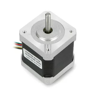 Silnik krokowy unipolarny, sześcio przewodowy. Posiada rozdzielczość 200 kroków na obrót (1,8 stopnia). Zasilany jest napięciem 6 V, pobiera prąd 800 mA na cewkę. Moment wynosi 3,17 kg*cm (0,31 Nm). Wymiary to 42 x 42 x 48 mm (NEMA 17).