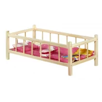 Łóżeczko duże dla lalek z pościelą z naturalnego drewna Produkt Polski