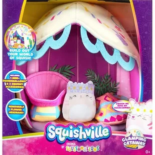 UWAGA: Nieodpowiednie dla dzieci poniżej 36 miesięcy! Ryzyko zadławienia z powodu małych części. UWAGA: Używać pod bezpośrednim nadzorem dorosłych. Zestaw Squishville Deluxe z namiotem kempingowym Speelhuisje, dwoma akcesoriami i przytulanką Paulitą de Tabby Kat! Niech natura lśni z tym dwustronnym zestawem do zabawy w stylu glamping! Pozwól swojej przytulance Squishville Paulicie cieszyć się fotelem kąpielowym w stylu boho lub materiałowym śpiworem na przytulne przygody na kempingu! Squishville.