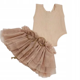 Przedmotem aukcji jest zestaw baletnicy: body nude i spódniczka latte. Zestaw baletnicy uszyty specjalnie dla hiszpańskich lalek Miniland. Pasuje również na lalki Paola Reina Wysokość lalki 38 cm lub 34cm. Zestaw skład się z bawełnianego body, zapinanego z tyłu na rzep oraz spódniczki tiulowej tutu.