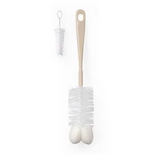 Babyono Szczotka do butelek i smoczków z gąbką i mini szczoteczką beżowa. Zadbaj o akcesoria do karmienia Twojego maluszka z naszym zestawem szczotek do czyszczenia butelek i smoczków dla niemowlątDługa szczotka zakończona miękką gąbką sięga aż do dna butelki, a malutka szczoteczka precyzyjnie. . .