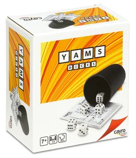 Kości oczkowe - zestaw do gry Yams (211) Cayro. Gra. W grze Yams, gracze starają się zdobyć jak najwięcej punktów, wyrzucając odpowiednie kombinacje na pięciu kostkachW opakowaniu znajduje się pięć kości oczkowych do gry, notes do zapisywania punktów oraz estetycznie wykonany kubek z. . .
