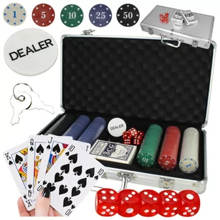 - profesjonalny zestaw do gry w pokera ▶️ duża aluminiowa walizka - zamykana kluczykiem ▶️ 2 komplety talii kart do gry ▶️ komplet kości ▶️ żeton rozdającego - DEALER ▶️ żetony do gry w 5 nominałach ▶️ wysokiej jakości powlekane karty do gry ▶️ idealnie nadaje się do gry w pokera i inne gry np.