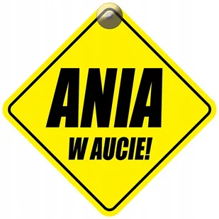 Tabliczka z przyssawką - ANIA W AUCIE SPECYFIKACJA: Materiał: HIPS 1mm - odporny na wysokie temperatury (nie odkształca się) Druk: UV, odporny na promieniowa...