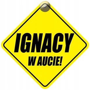 Tabliczka z przyssawką - IGNACY W AUCIE SPECYFIKACJA: Materiał: HIPS 1mm - odporny na wysokie temperatury (nie odkształca się) Druk: UV, odporny na promienio...
