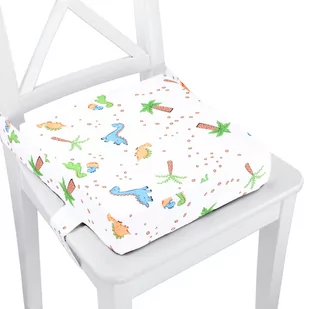 Tapicerka krzesła z przyjaznymi dla dzieci motywami. Uwaga: to siedzisko podwyższające pasuje tylko do krzeseł; NIE należy używać do transportu samolotem, samochodem itp. NIEBEZPIECZEŃSTWO! Odcień kolorów może się nieznacznie różnić w zależności od światła na zdjęciach (naturalne/sztuczne), partii materiału czy ustawień monitora.