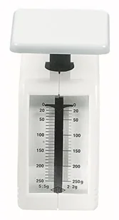 Poręczna waga sprężynowa 250- mechaniczna waga literowa i dietetyczna- wykonana z tworzywa sztucznego- ze śrubą zerowania do regulacji- z wyjmowaną tacą- Wymiary płytki ważącej: (szer.) 120 x (gł.) 110 mm- Wymiary wagi: (szer.) 70 x (gł.) 104 x (wys.) 115 mm WEDO HANDY 250Mechaniczna waga listowa i dietetyczna wykonana z białego tworzywa sztucznego ze zdejmowaną białą szalką i śrubą do regulacji zeraPojemność: 250 g z podziałką 5 g i dokładną podziałką 2 gWymiary: 10,4 x 7,0 x 11,5 cm,Płytka ważąca 12,0 x 11,0 cm mechaniczna waga do listów i diet, wykonana z tworzywa sztucznego, ze śrubą do ustawiania zera, z wyjmowaną tacką, podziałka: