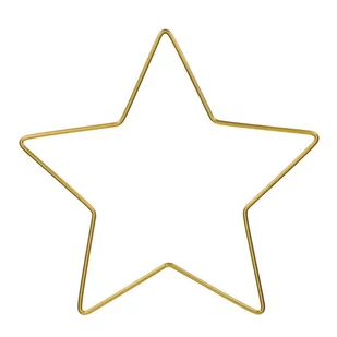 Opis: Obręcz metalowa w kształcie gwiazdki Materiał: Drut metalowy w kolorze złotym Ilość sztuk w opakowaniu: Jedna Wymiary: Wymiary: 15x15cm Grubość drutu: 3mm