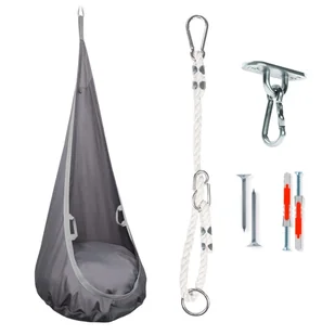 Opis produktu:Firma MAMOI wyróżnia się wysoką jakością swoich produktów. Spełniają one również surowe wymogi i normy bezpieczeństwa. Fotel egg indoor nadaje się do każdego pomieszczenia jako huśtawka do zabawy, czytania i relaksu. W produkcji nie są używane żadne zanieczyszczenia chemiczne, barwniki ani środki czyszczące. Produkt ekologiczny. Wewnętrzna huśtawka dla dzieci ma ponadczasowy design. \Huśtawka wykonana jest z wysokiej jakości bawełny o gramaturze 210 g/m2. Materiał jest bardzo trwały, łatwy do czyszczenia i bezpieczny. Wszystkie krawędzie są zabezpieczone paskiem do przenoszenia. Materiał nie podrażnia skóry dziecka. Huśtawka gniazdo jest wyposażona w podwójnie szytą poduszkę. Poduszka ma grubość 10 cm i kształt koła o średnicy 60 cm. Jest wypełniona kulkami silikonowymi, które utrzymują siedzisko w jego kształcie. Wypełnienie jest hipoalergiczne, a zatem bezpieczne dla dzieci. Huśtawka do sypialni jest przeznaczona do montażu na suficie. Hak do zawieszania wykonany jest z taśmy nośnej. Jest to część siedziska, która chroni przed rozdarciem lub zawieszeniem. Przy otworze dodano dwa uchwyty z materiału, aby maksymalnie ułatwić wchodzenie i wychodzenie. Podwieszane siedzisko dla dzieci ma wysokość 140 cm (z przedłużeniem 180-190 cm). Huśtawka dla dzieci może utrzymać do 60 kg i jest odpowiednia dla dzieci powyżej 36 miesiąca życia. Podczas zabawy zalecany jest nadzór osoby dorosłej: krzesło sensoryczne, huśtawka dla dzieci, huśtawka ogrodowa, siedzisko do huśtawki ogrodowej, huśtawka sensoryczna dla dzieci z autyzmemDane techniczne: