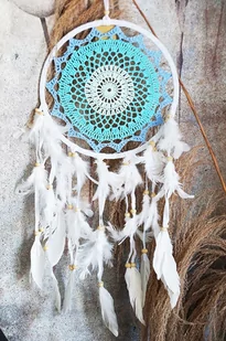 Zachwycają mnogością rodzajów, wariantów kolorystycznych, a nawet wielkości. Pochodząc z indiańskich wierzeń nadają oryginalności i powiewu magicznej atmosfery, co sprawia że idealnie wpasują się w każdą przestrzeń bez względu na jej styl czy przeznaczenie. Mogą stanowić główny element dekoracyjny wnętrza, jak również być jego subtelnym dopełnieniem - jedynym ograniczeniem przy wybieraniu łapacza snów jest wyobraźnia i wizja. Wymiary: średnica 27cm długość całkowita ok 77cm.
