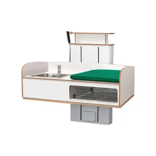 Kompaktowy przewijak z elektryczną regulacją wysokości i materacem. Przewijak oferuje podwyższone krawędzie boczne i zaokrąglone narożniki, aby zapewnić dzieciom bezpieczeństwo. Dostępny w wersji ze zintegrowanym zlewem lub bez. Przewijak NEIL to prosty i efektowny mebel ułatwiający opiekę nad dziećmi. Stół oferuje elektryczną regulację wysokości, co oznacza, że można go łatwo ustawić na odpowiedniej wysokości i uzyskać wygodną pozycję podczas przewijania. Ręczna regulacja wysokości.