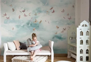 Zephyr Mint Delikatna Tapeta dla dzieci w Akwarelowe Chmury