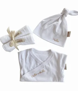 Zestaw wyprawkowy dla noworodka, idealny na prezent. W zestawie body, czapeczka z supełkiem i 2pakiem pieluszek.
