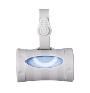 Ubbi Pojemnik na woreczki do pieluch Grey Numer kat. U10168 Przenośny pojemnik na woreczki do pieluch, który możesz mieć zawsze przy sobie. W swoim wnętrzu zmieści rolkę składającą się z 12 worków na zużyte pieluszki. W przypadku wysunięcia się większej ilości torebek, specjalny mechanizm pozwala łatwo zwinąć je ponownie. Pojemnik na worki za pomocą silikonowego paska przypniesz do wózka lub torby, by w razie potrzeby mieć go na wyciągnięcie dłoni.