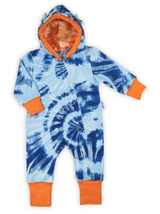 Wyprodukowano w Polsce Pajac dresowy z dodatkiem elastanu dla chłopca. Idealny do wózeczka. Posiada ściągacze w rękawach, przy nogawkach w druk tie dye - w o...