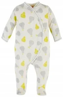 PAJAC NIEMOWLĘCY POLSKIEJ PRODUKCJI MAKOMA ROZM. 62 Bawełniany pajacyk niemowlęcy polskiej firmy Makoma. Pajacyk jest biały, pokryty rysunkami gruszek. Pajac...